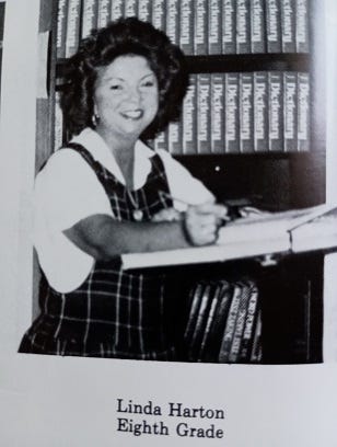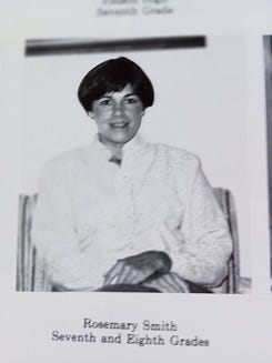 I had Mrs. Linda Harton for homeroom. The other eighth-grade homerooms were led by Mrs. Kandace Baker, Mrs. Rhonda Scruggs, and Mrs. Rosemary Smith, who had a combination seventh and eighth class.