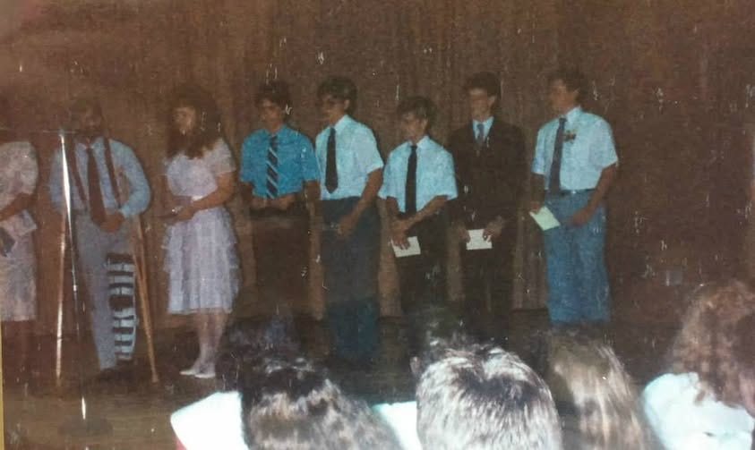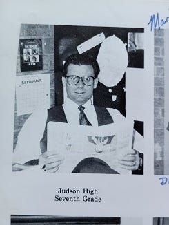 I’ll just be honest here. After the whirlwind of change, new environs, and new faces of seventh grade, for me at least, eighth grade turned out to be a good bit less eventful. It’s not that the year was boring or nothing much happened; I think you’ll see that if you read the rest of this. But, far now from being a medium-sized fish from a very small pond that had been dropped in a big lake, I was now a somewhat-taller, medium-sized fish that was accustomed to the lake, and kind of used to being in a class of 90-something people.